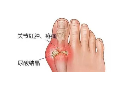 当尿酸晶体积聚在脚部关节中时,皮肤会瘙痒逐步扩展会使外层皮肤变薄、破裂,关节周围的皮肤开始剥落形成痛风石。